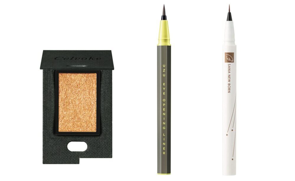 〈右から〉サナ ニューボーン シューティングリキッドアイブロウ 03 1,100円(編集部調べ)/常盤薬品工業 ウズ アイオープニングライナー カーキ 1,100円/UZU ヴァティック アイズ 04 2,200円/セルヴォーク