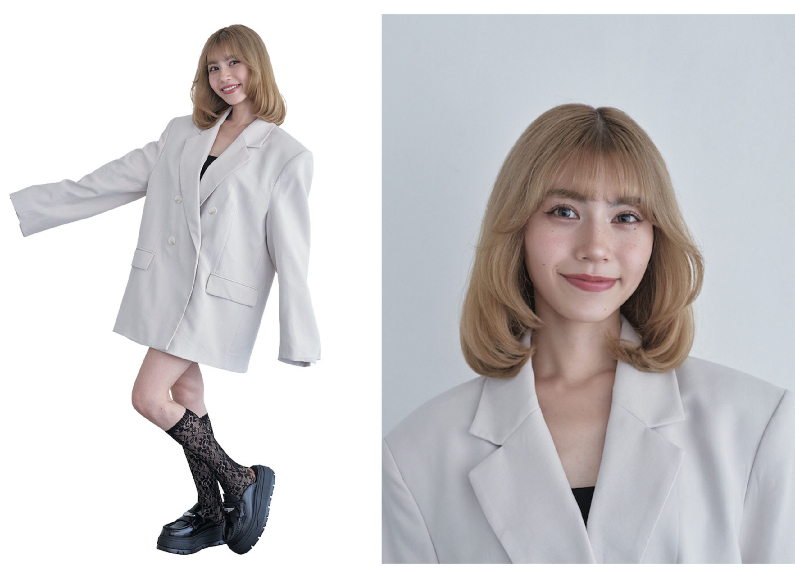 真逆なテイストのリンダカラー∞のりなぴっぴさんが、minaスタイリストが用意した衣装に合わせてセルフメイクでmina女子に変身! お笑いのフィールドとは異なる姿も、魅力的です。