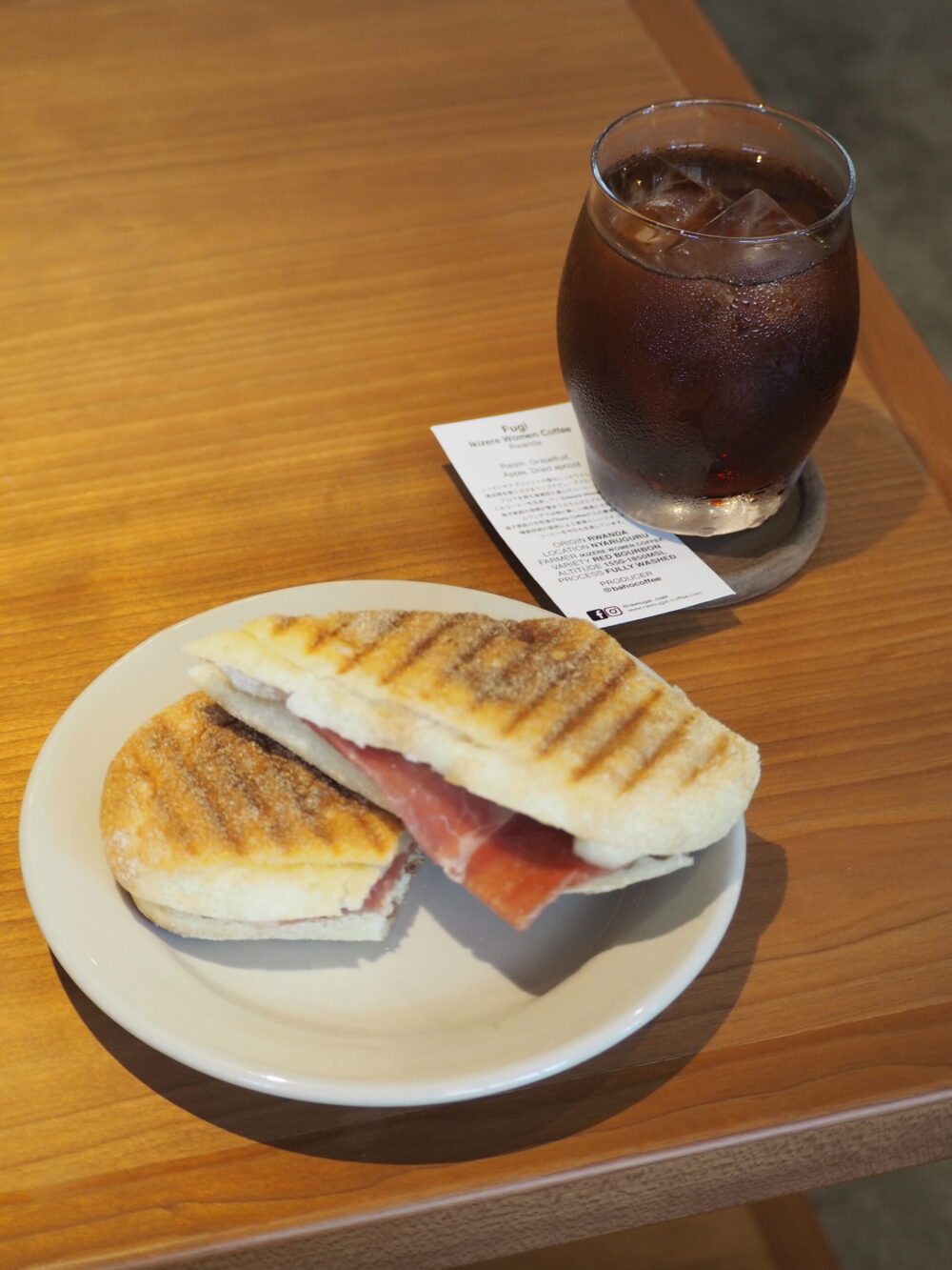 飲んだのはルワンダ産の豆を使ったコーヒーで、フルーティーで爽やかな味わいです。濃厚なチーズとハムを挟んだパニーニとの相性もよくて、朝からなんだかリッチな気分に。