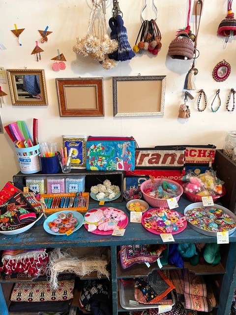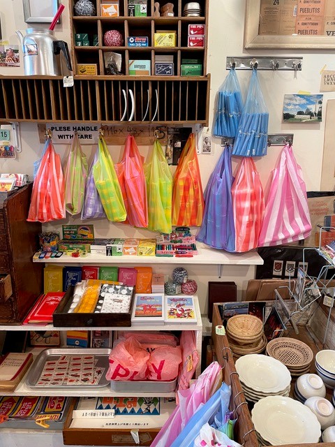 経堂駅から7分ほどのところにあるこの店は、コラージュ作家のオギハラナミさんの雑貨店。国内や海外で買いつけたというキッチュでカラフルな商品でいっぱいです。なかには、台湾のカラフルなビニール袋、タイの耳かき、日本のスーパーで一度は見たことがある「これはうまい!」と書かれた販促シールにオクラ用のネットの袋など、普通の雑貨店にはないユニークなものが揃っています。隅々までチェックしていたら、あっという間に1時間経っていました。