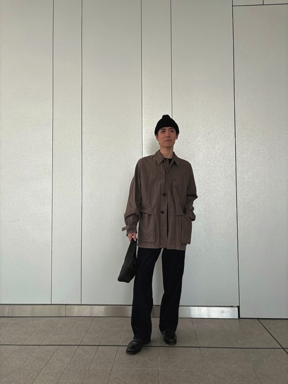 「こだわったのはサイジング。野暮ったくならないように大きすぎないアウターでボトムの形を強調させました。アウターとデニム以外は黒でまとめて引き締めたのもポイント」
