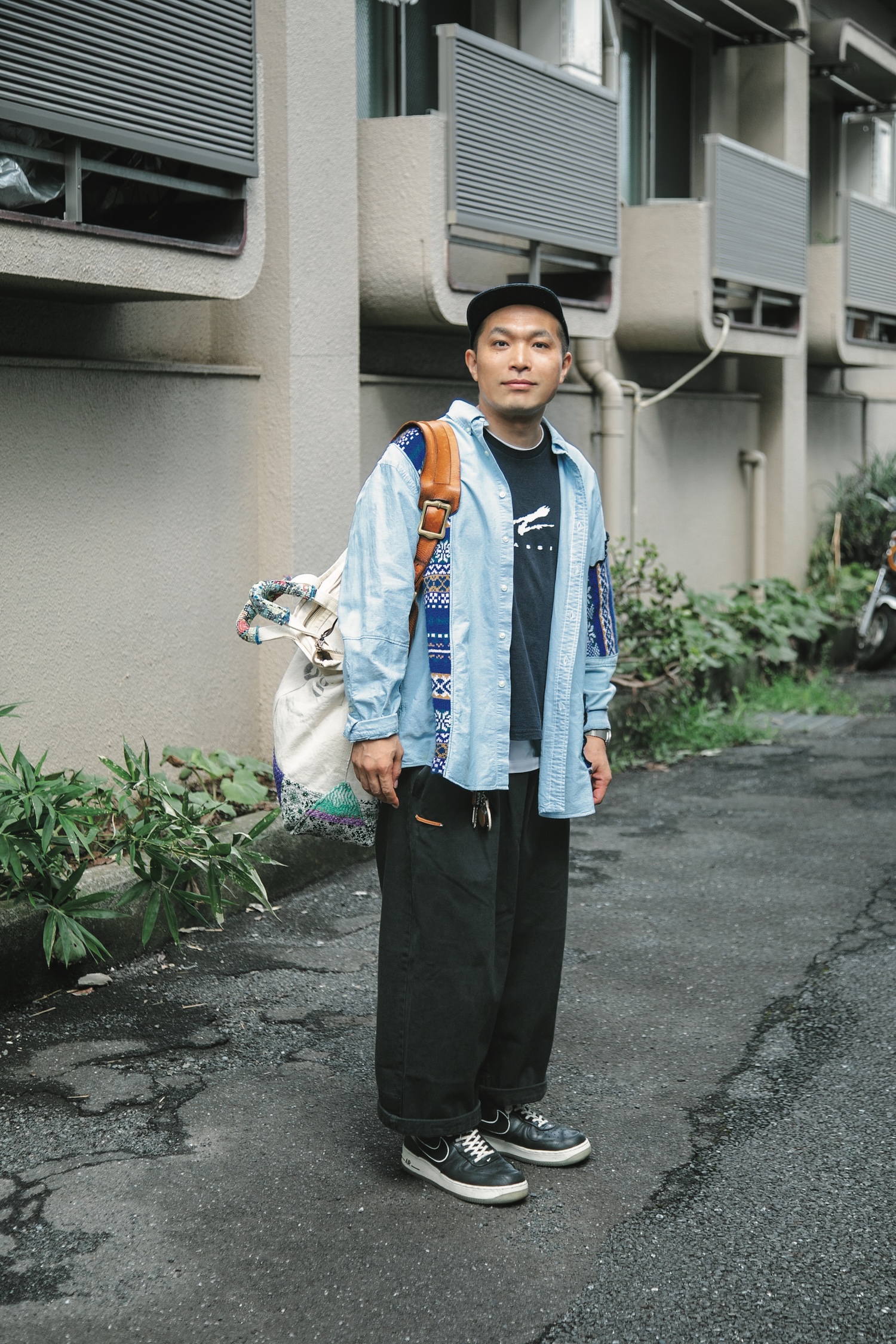 「普段から着ている服のほとんどが、古着や布をリメイクしたもの。コロナ禍をきっかけに始めたんですが、今では『塚本ミシンというタグをつけて芸人仲間に贈ることもあります。今日のシャツとTシャツもリメイク。インパクトがあるので、ボトムはシンプルにしました」