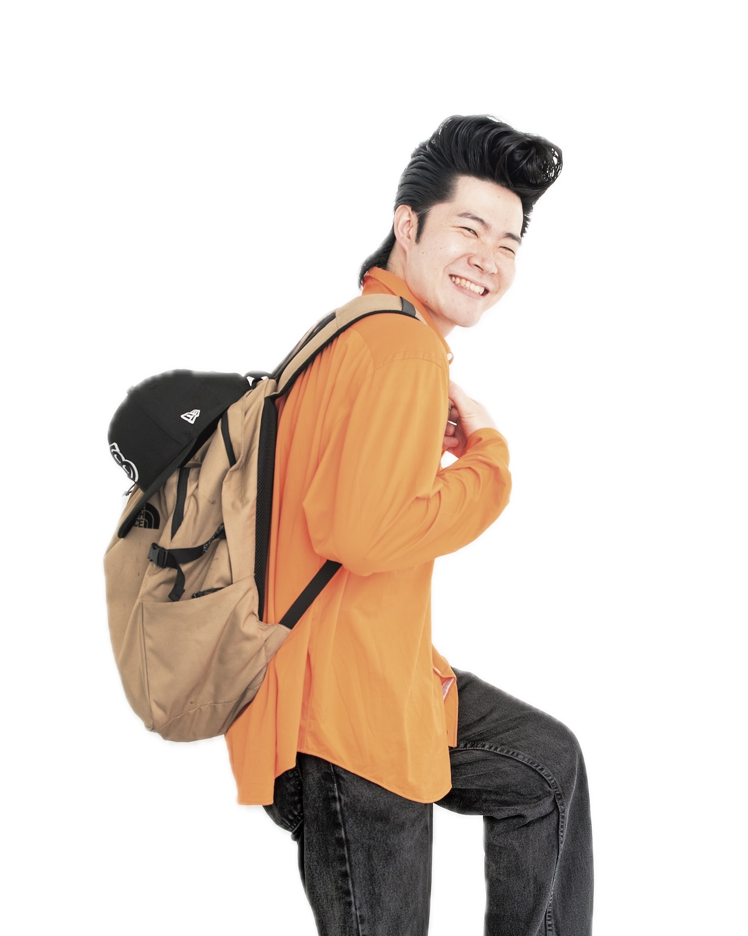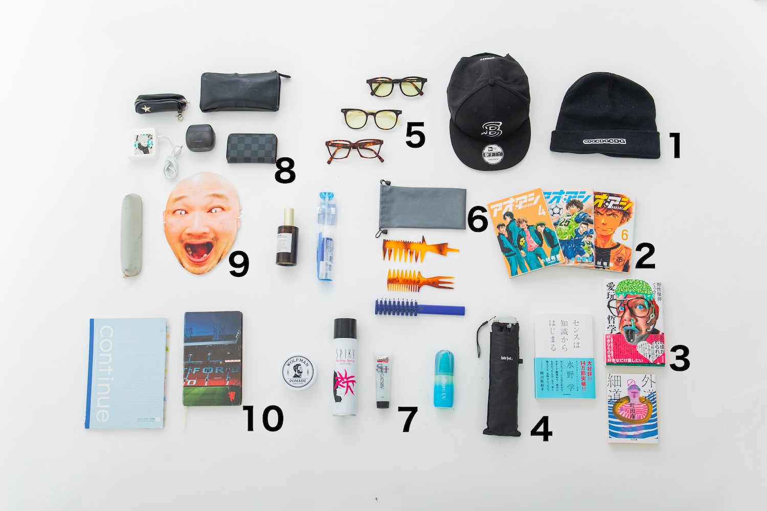 「大阪を拠点に活動しているんですが、今日は東京に一泊するので、新幹線やホテルで読む用に本を持ってきました。ノートとペンは必需品。オフの日は、カフェでひとりで企画を考えたり、頭を整理することが多いんです。荷物は多いほうなので、容量のあるリュックを愛用。このノースフェイスはポケットが多くて、仕切りもあって重宝しています」