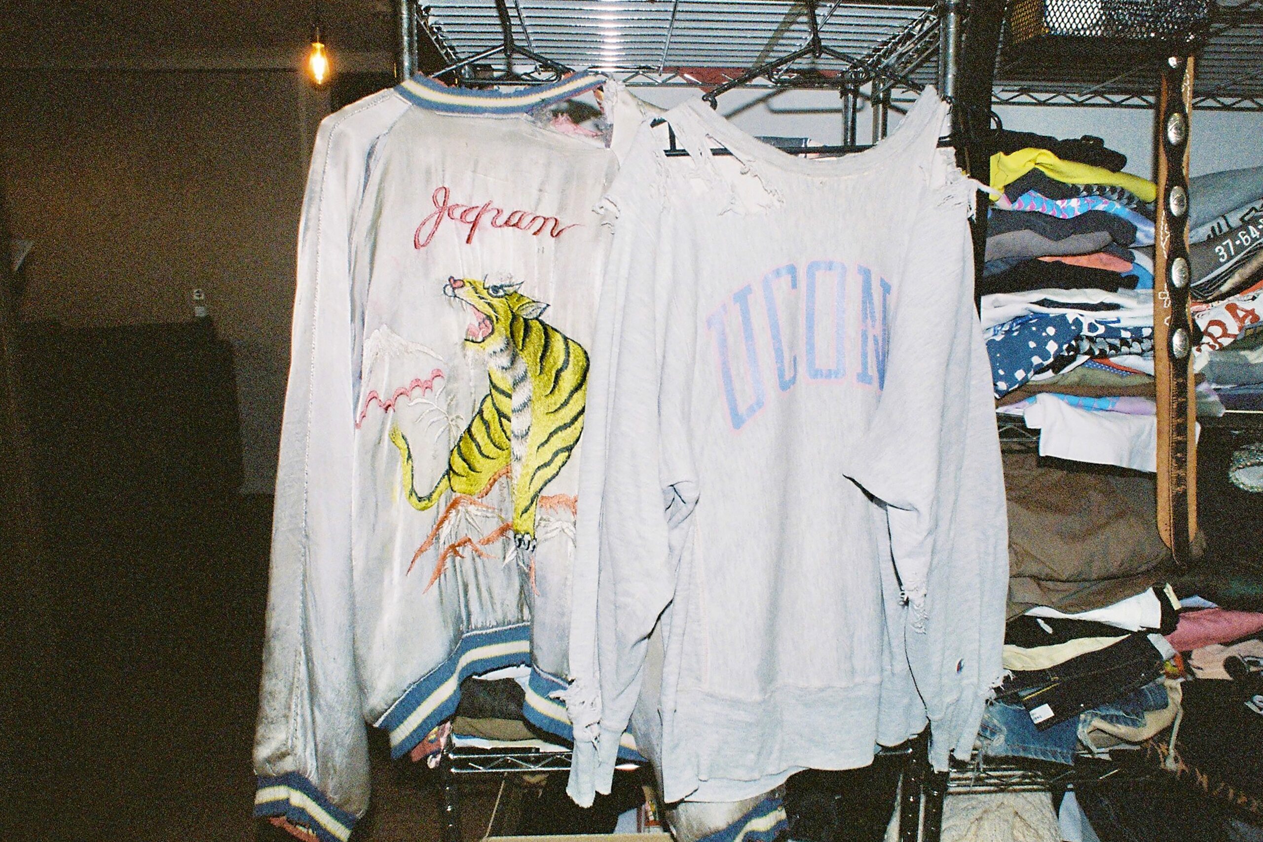 クローゼットの中でも特に目立っていた、大きくダメージの入ったスウェットとスカジャン。