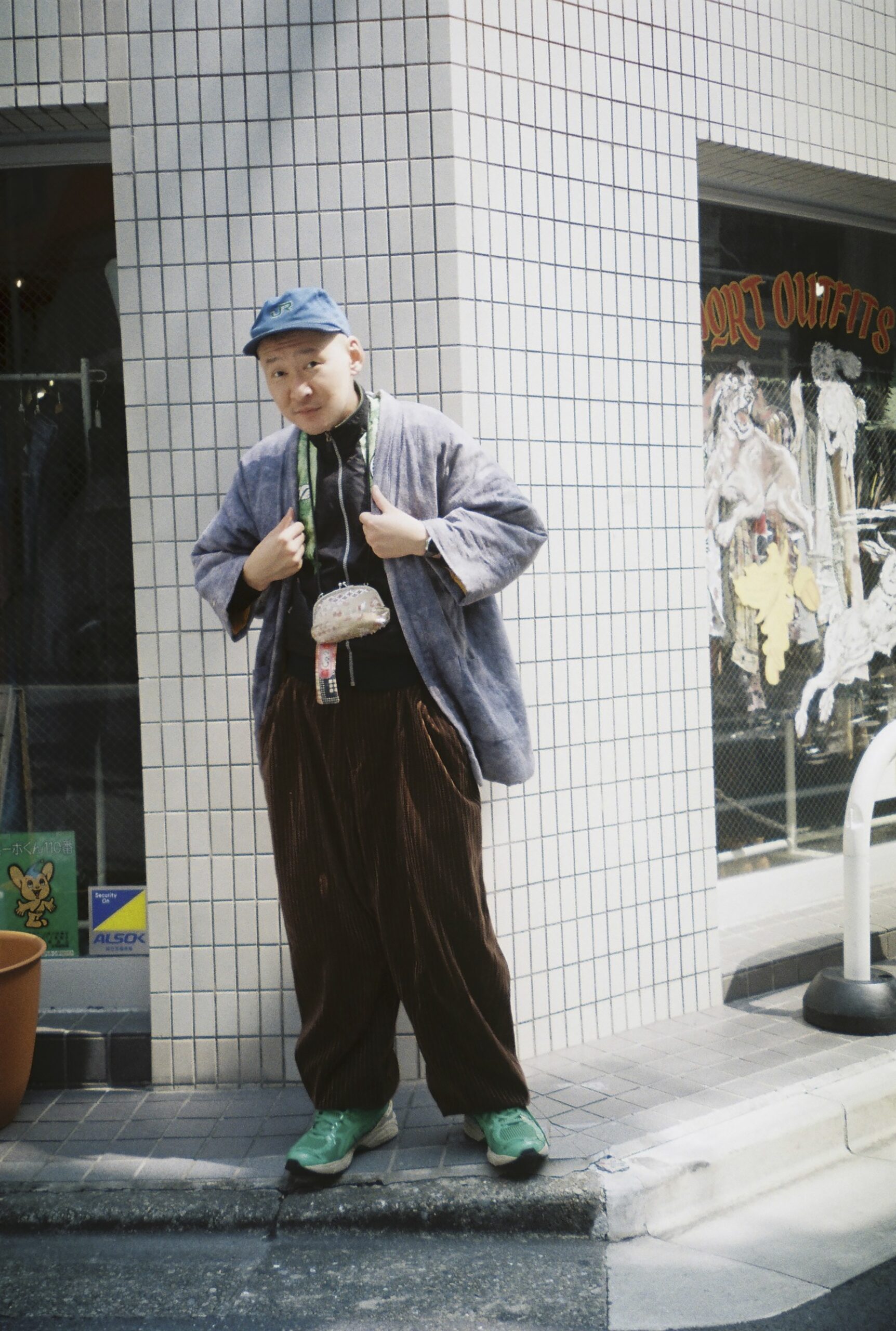 高円寺に住み、街の魅力を発信していることから「高円寺芸人」と自称する彼のインスタグラムには、個性的な古着のスタイリングが並ぶ。そのインスピレーション源は、高円寺の街の人々だという。
