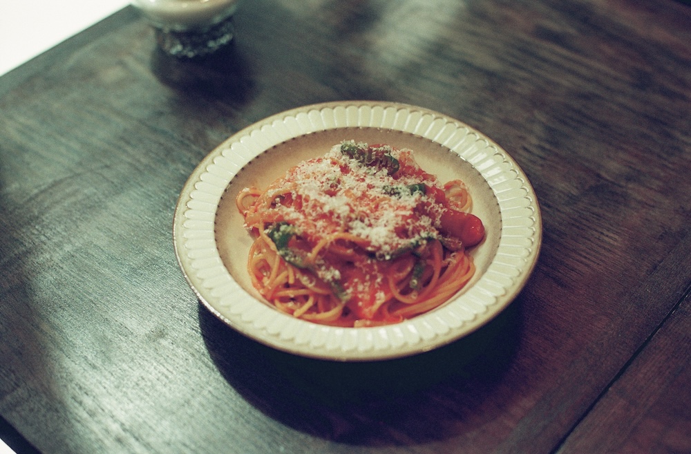 名品と呼ばれるニットと温かいランチを掛け合わせたファッション企画で訪れた喫茶ブリッヂ。銀座駅直結の西銀座デパートの地下1階で60年以上続く老舗喫茶店です。ナポリタンやサンドイッチといった往年の喫茶メニューのほか、メロンをふんだんに使ったパンケーキやナチュールワインも楽しめます。