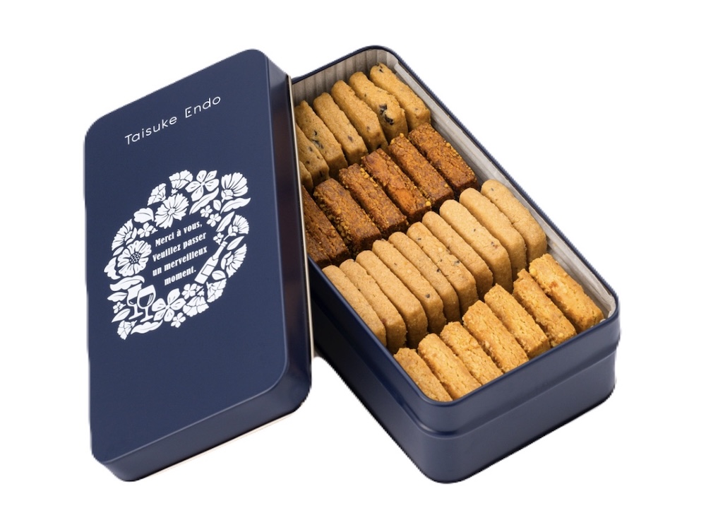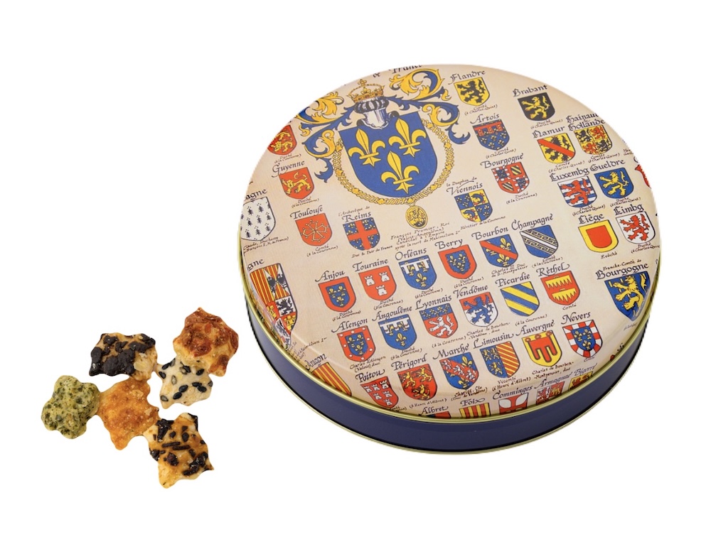 サブレ、クラッカー、メレンゲ、アーモンドなど6種類が入ったクッキー缶。「可愛らしいデザインで、ギフトにもぴったり! 普段、焼き菓子には紅茶を合わせますが、塩気があるのでこれにはお酒を合わせたくなります」125g 2,900円