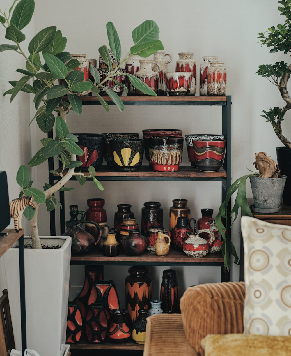 50年代から70年代後半に旧西ドイツに存在したファットラバという工房の陶器が並ぶ。「コロナ禍にハマって、海外のフリマサイトを通して個人売買で集めました」