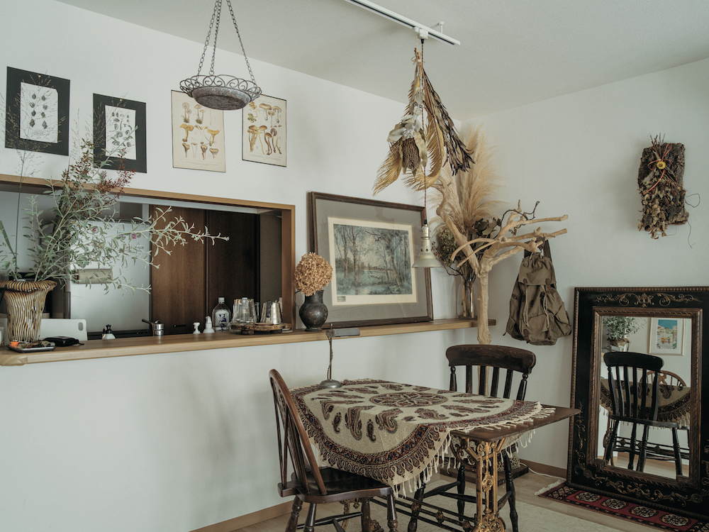 そのものが歩んできた歴史や生まれた時代、前の持ち主に思いを馳せると、胸の奥をきゅっと掴まれるような感覚になるという。自宅のリビングには、少しずつ買い集めた思い入れのある家具や雑貨が並んでいた。