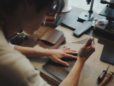 レザー製作がモデル業にも活きています