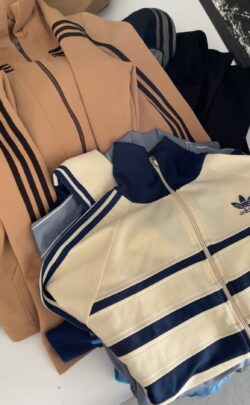 誌面ではすべてを紹介しきれませんでしたが、写真は最近集めているというadidasのジャージ、通称「骸骨ジャージ」と呼ばれるアイテムたち。