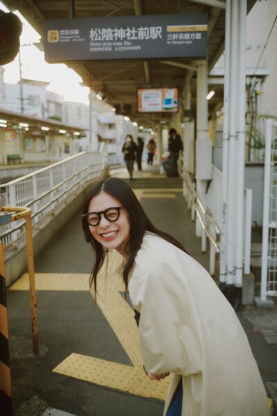 そして、育未がよく散歩をするという、松陰神社付近でも撮影。終始、飾らない自然な表情の彼女が撮影できたのは、実は育未の旦那さまであるカメラマンさんが撮影してくれたからなんです。ふたりの信頼関係が伝わる写真、ぜひ誌面で確認ください。