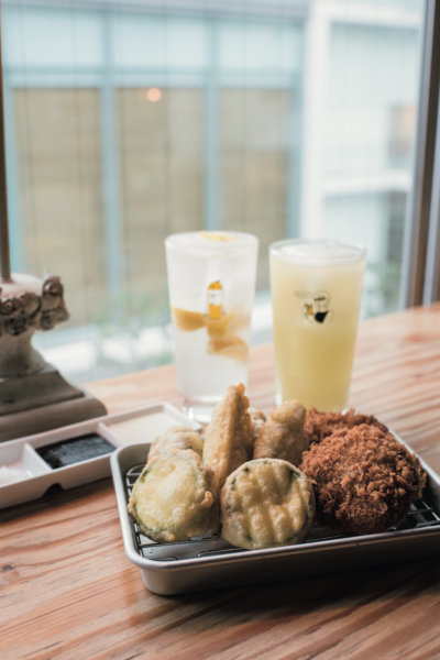自由が丘の飲み屋さんで配布している「自由が丘立ち飲みマップ」を持参した人、またはInstagramでニショクのフォロワー限定のサービス。青海苔入りのひと口サイズの揚げピザを無料でサービス中。店員さんに声をかけて!