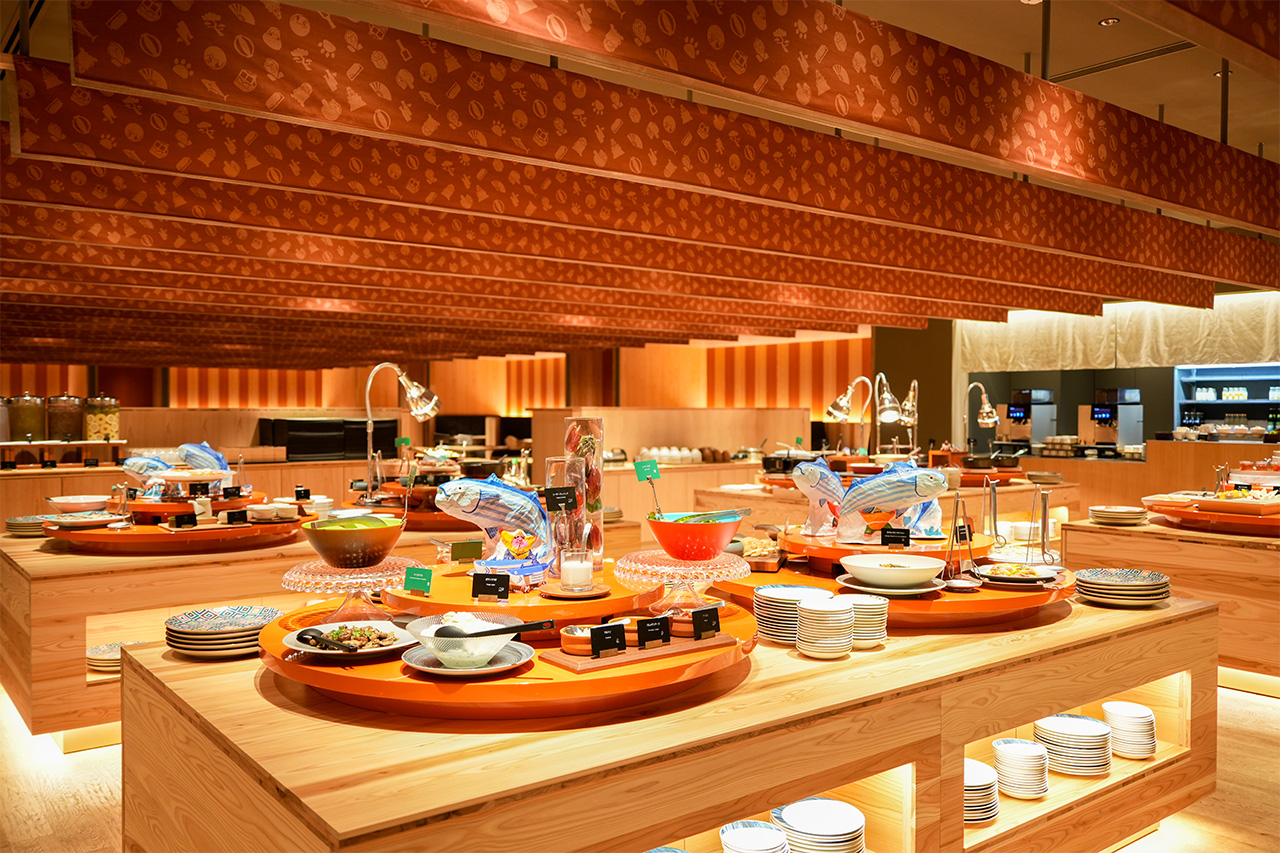 ディナーはOMOダイニングで高知の郷土料理を取り入れたメニューがずらりと並ぶビュッフェを満喫。「TOSAインスパイア」をコンセプトに、みょうがのタルタルソースで味わう「カツオとメヒカリのフィッシュアンドチップス」やつくりたてを食べられる「芋けんぴ」など、高知らしさあふれるメニューをお腹いっぱい食べられます。