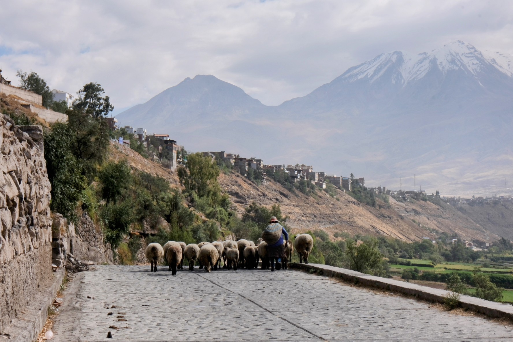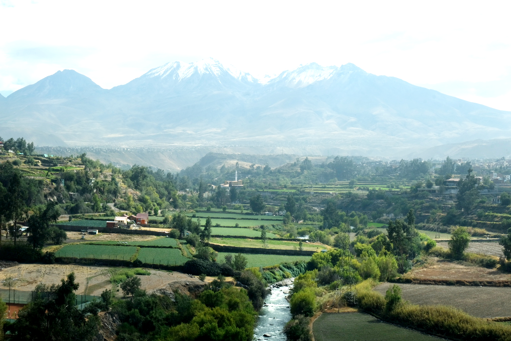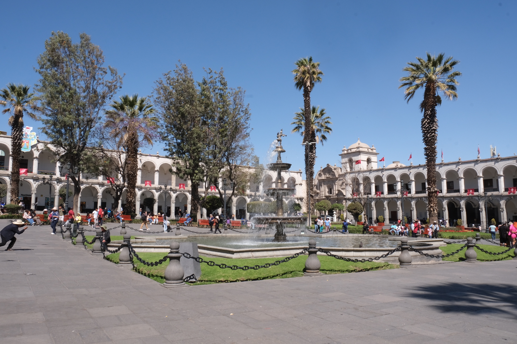 リマから飛行機に乗り約1時間半の場所に、ペルー第2の都市であるアレキパがあります。ここは標高約2,335メートル、ミスティ、チャチャニ、ピチュピチュという3つの火山に囲まれた美しい古都です。