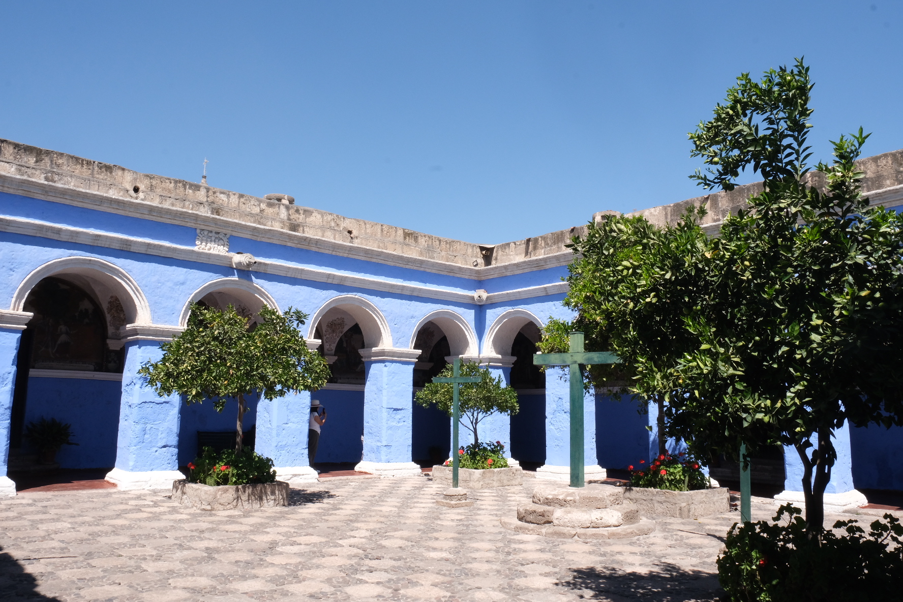 ここから少し歩くと、まるでひとつの街のような広大な敷地を持つ「サンタ・カタリナ修道院」があります。1579年に設立され、約400年もの間、外部から閉ざされていたこの場所は 、鮮やかなレンガ色や青く塗られた壁、美しい中庭が迷路のように入り組み、訪れる者を中世の世界へと迷い込ませます。