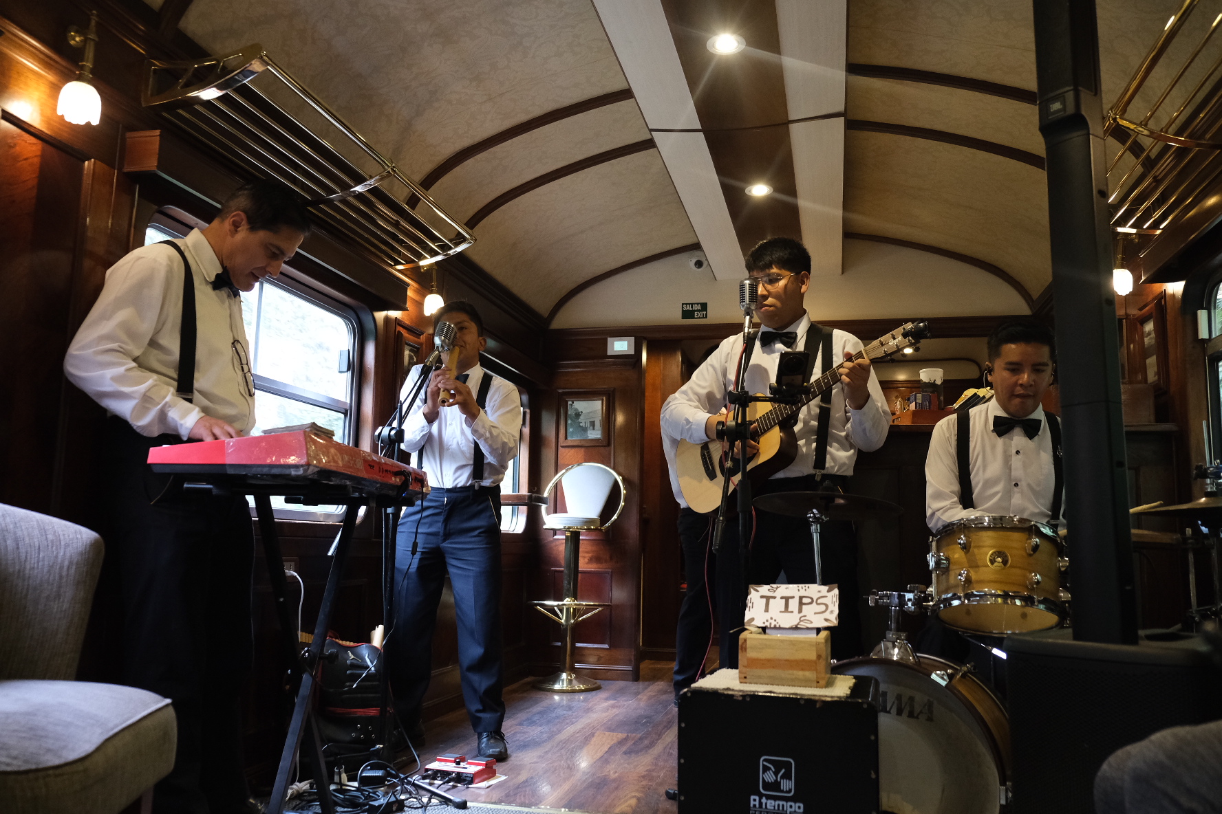 列車がアンデスの山々を走り抜ける中、伝統音楽の生演奏や、華やかな衣装をまとったダンサーによる伝統舞踊が披露され、マチュピチュに着く前から旅の気分を盛り上げてくれます。
