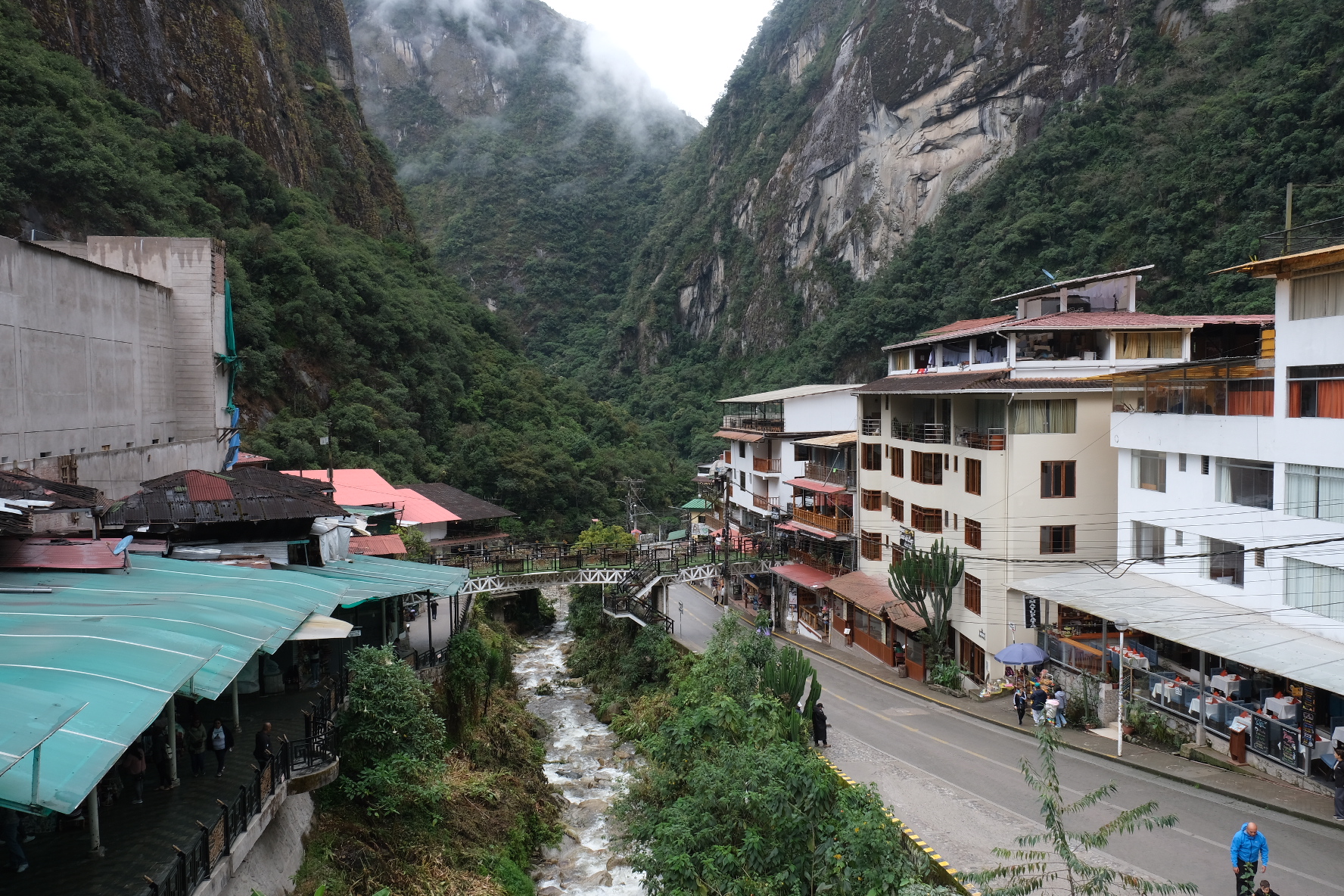 アマゾン川へとつながるウルバンバ川の渓谷美を眺めること約1時間半、麓のマチュピチュ村に到着。ここから専用のシャトルバスに乗り、つづら折りの道を登っていくきます。