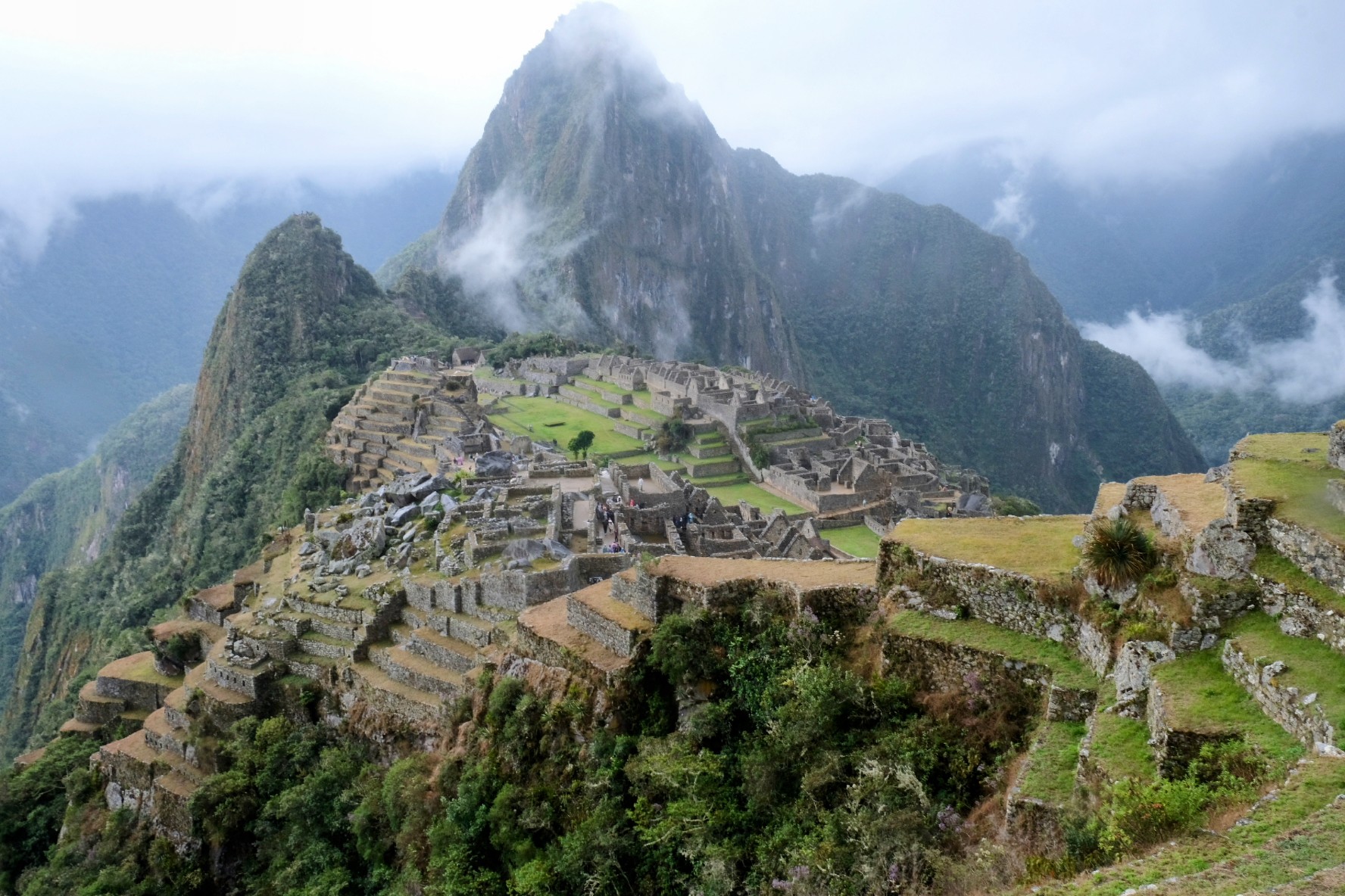 標高約2,450メートルの山の尾根に広がるマチュピチュは、スペインの侵略から逃れるために築かれた、あるいは王族の避暑地であったなど諸説あります。しかし、アンデス文明は文字を持たなかったため、その目的は今も解明されていません。