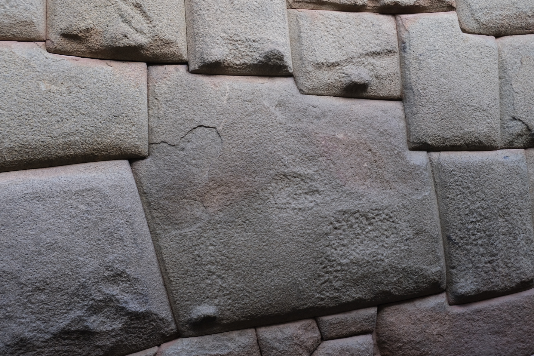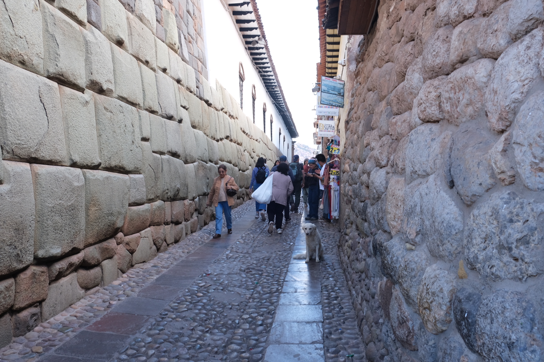 もう片側に残るスペイン人が築いた石組みと見比べると、その出来は一目瞭然。インカ帝国の職人たちの技術力の高さに、脱帽です。