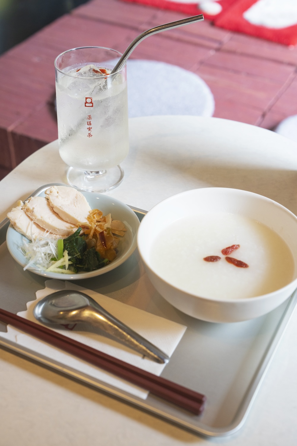 設計デザイナーのオーナー夫妻と、薬膳マイスターの資格を持つお母様の3人で運営。築60年の別荘をリノベーションし2021年にオープンした。赤を基調にした店内は現代アートが散りばめられ、年季の入った外観からは想像もつかないモダンな空間が広がる。一瞬ギョッとする店名だが、周辺住民に高齢者が多いことから、体が元気になる薬膳で健康になってもらいたいという思いで名づけたそう。鶏ガラ出汁の薬膳粥(800円)や、お肉を饅頭で包んだ包、白キクラゲや菊花などをブレンドした薬膳茶(いずれも500円)などの薬膳料理が手ごろに楽しめる。