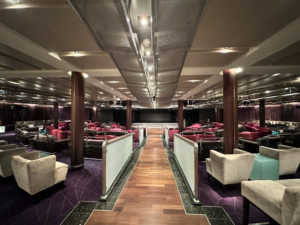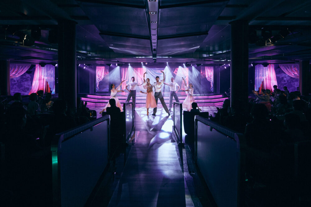 船内のエンターテインメントの目玉といえば、メインステージの「オーシャンステージ」。船の中とは思えない、高級なシアターのような客席が広がっています。
