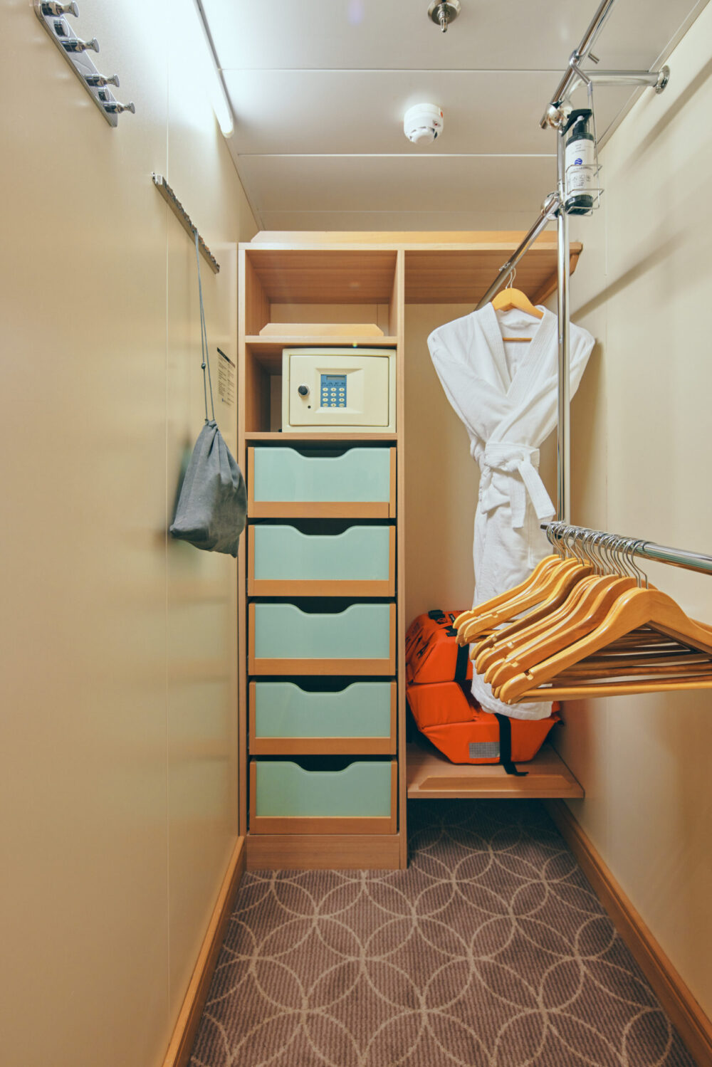ウォークインクローゼットもこんなに広い! 長旅の衣装もしっかり広げられます。