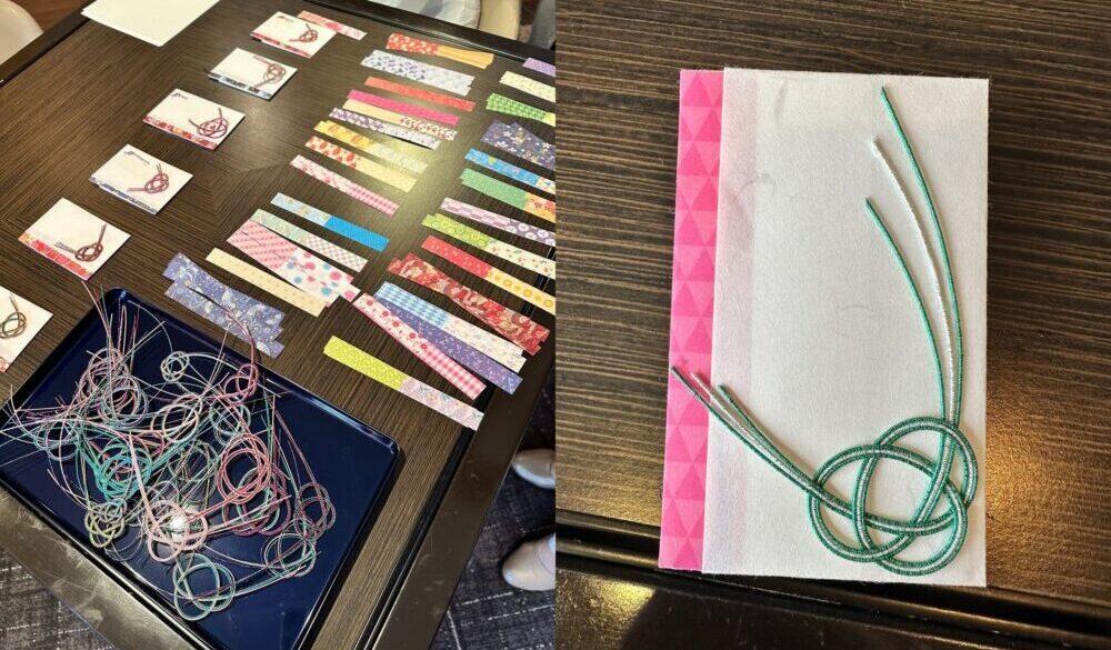 好きな水引き、千代紙を選び、オリジナルの可愛いお祝い袋をつくることができました。一緒のグループになったほかの乗客たちと、教え合ったり、出来上がったお祝い袋を見せ合ったり、楽しい交流もできました。