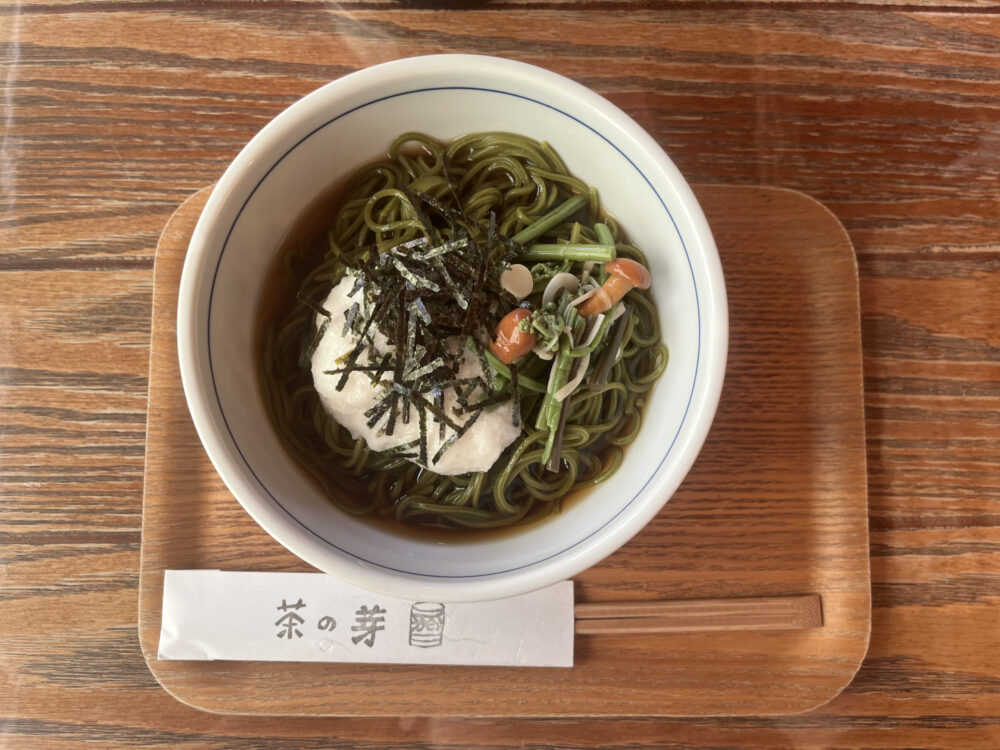 食事時には軽めの茶そばセットも人気。どれもお茶の香りを引き立てる素朴な美味しさで、心までほっとほどけていくよう。
