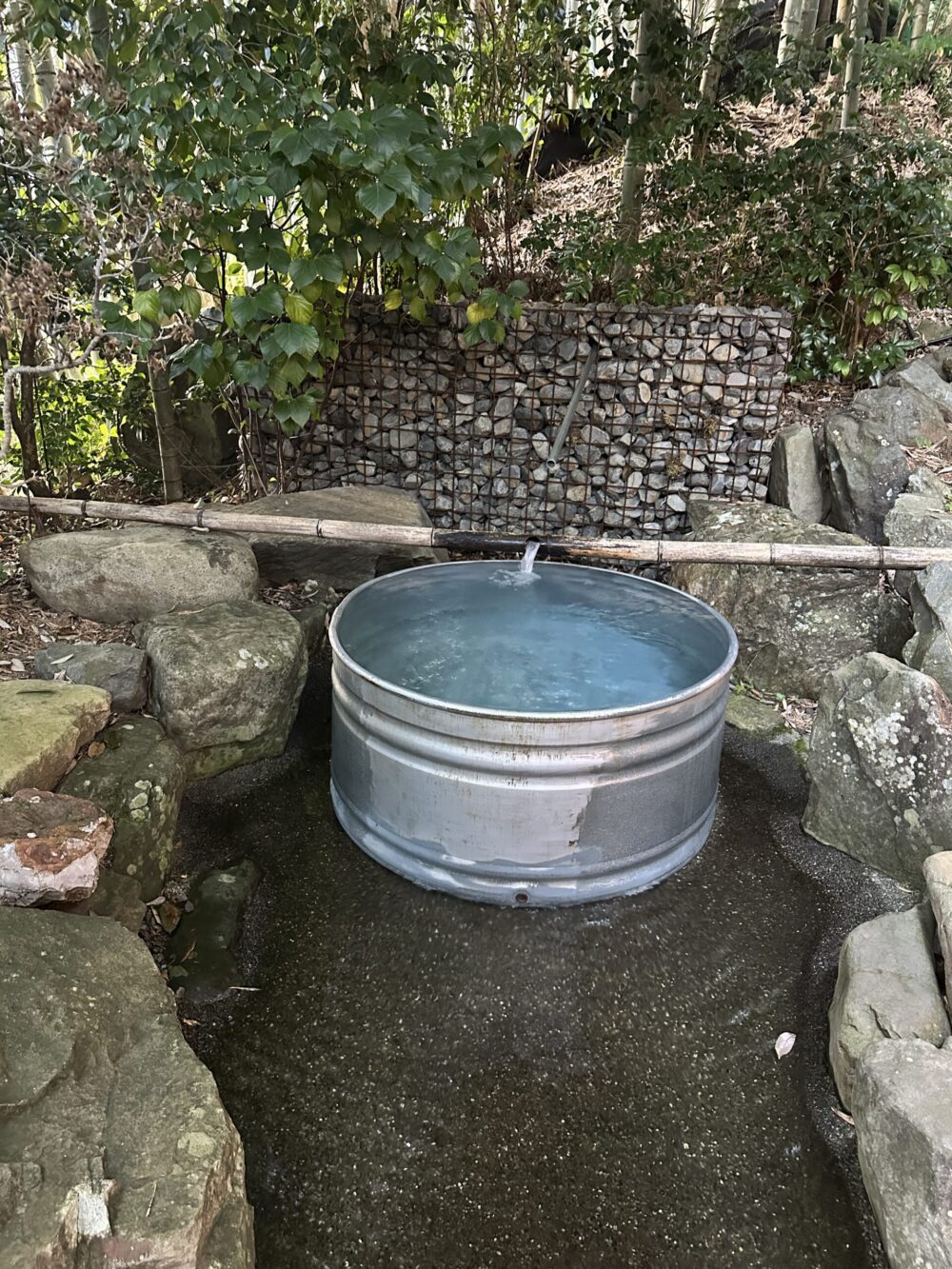 サウナのあとは、中庭にある沢の水を引いているという天然の水風呂にドボン! 通年で約6〜19度という自然の水温と、周りの自然の景色とともに四季を感じることができ、最高のリフレッシュ体験に。