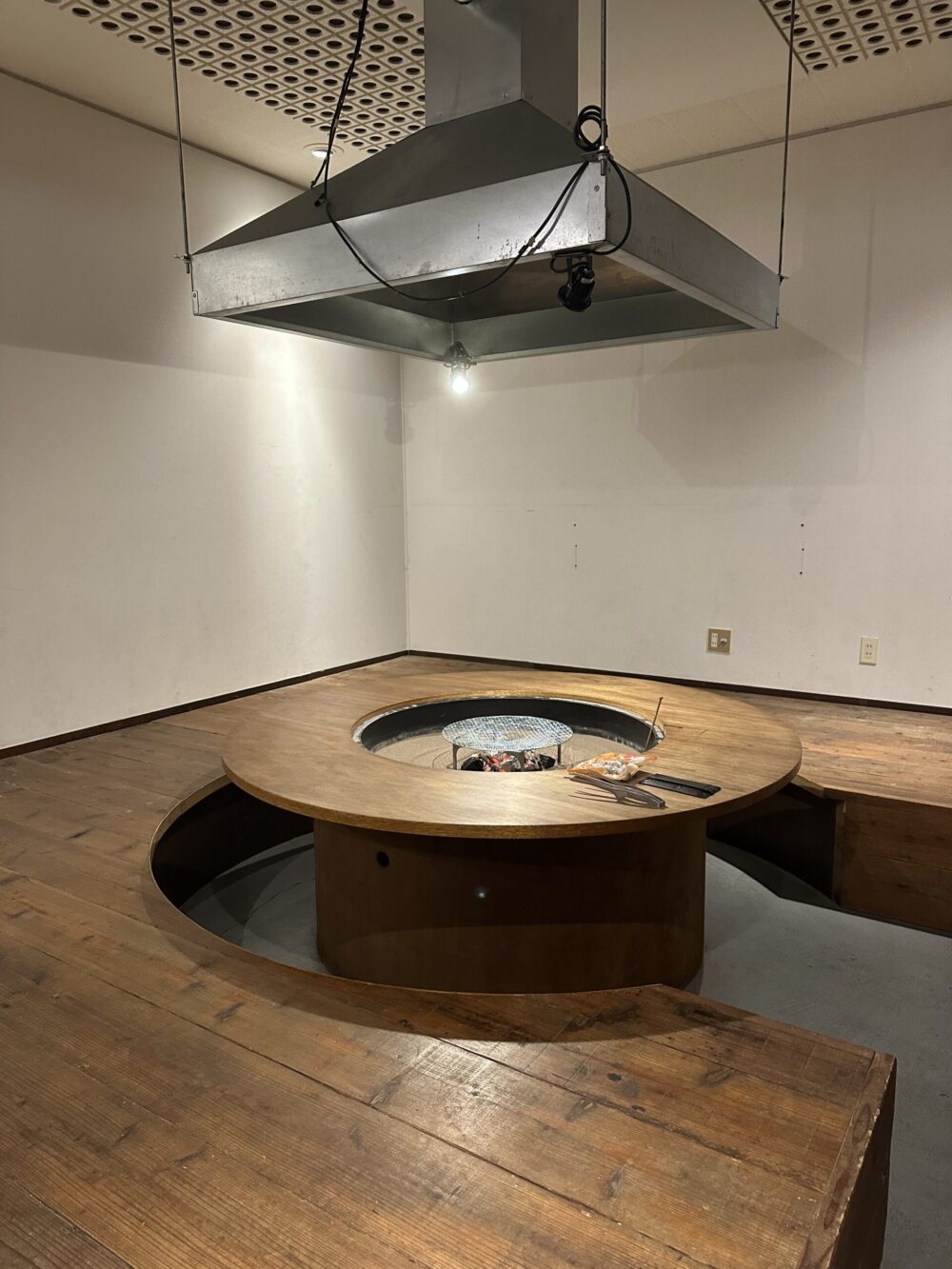 この宿のもうひとつの魅力は、囲炉裏付きの屋内BBQスペースで、サウナ後の「サ飯」を味わえること! 火起こしはスタッフの方がおこなってくれ、調理器具や食器、調味料は完備されていますが、食材や飲み物は自由に持ち込んでBBQを楽しむことができます。