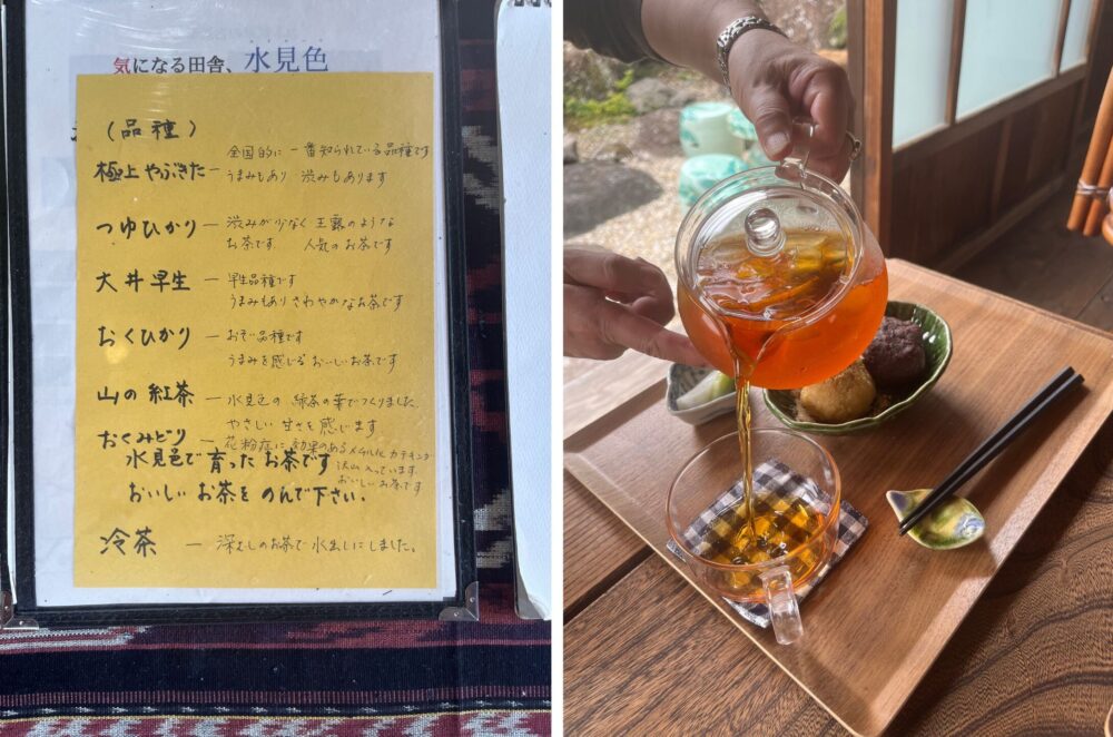 同じく、オクシズでお茶が楽しめるカフェをもう一軒ご紹介。静岡駅から車でおよそ40分の、山あいに広がる小さな集落・水見色(みずみいろ)に、ひっそりと佇む古民家カフェがあります。もともとお茶農家だったという築180年の家を改装し、地元の茶畑で育った茶葉をその場で味わえる“山のお茶カフェ”として親しまれています。